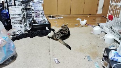 カーペットの上で毛繕いするシフォン